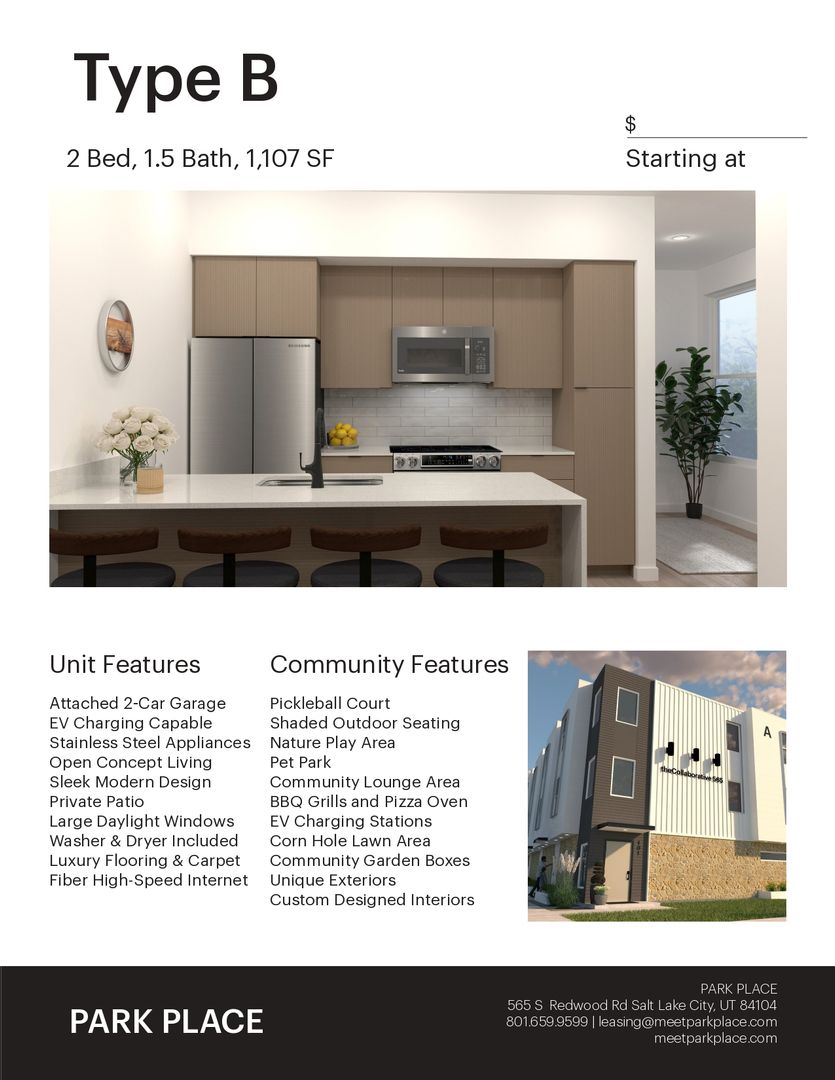 Be the first to live in these brand-new 2 bedroom, 1.5 bathroom townhomes located just around the corner from Utah’s future MLB Stadium and Entertainment District! Each unit features modern finishes, a spacious floor plan, and convenient amenities including an in-unit washer and dryer, high-speed internet, and a 2-car tandem deep garage. Enjoy unbeatable access—just minutes from downtown Salt Lake City, the SLC Airport, UTA’s Trax line, and over 60 miles of scenic trails along the Jordan River Trail. You’ll also be surrounded by shopping, dining, and entertainment options in one of the fastest-growing areas of the city.